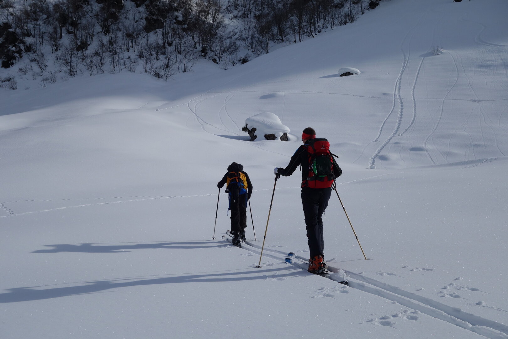 Schattige Hanglagen versprechen oft Pulverschnee. Auch wenn die Sonne am Ende des Hochwinters teilweise ihren Weg findet, bleiben die Schneeverhältnisse in der Regel noch lange optimal.