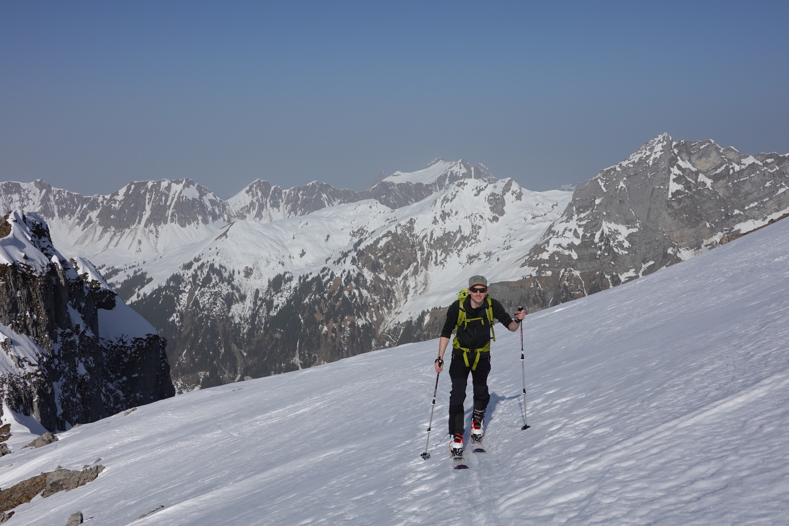 Wäre der Näbelchäppler nicht als Skiberg zugänglich, würde es wohl nicht viele Kandidaten geben, welche sich diesen Berg auf die Tourenliste setzen, obwohl der Gipfelaufbau wie ein Turm in die Höhe ragt. Doch davor ist der eine oder andere ruppige Abschnitt oder ziemlich steile Hänge, in einem Fall ein exponiertes Eck, zu meistern. Nicht zu vergessen, die beachtliche Höhenmeterleistung.