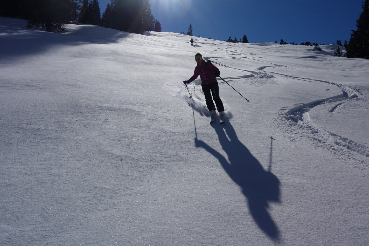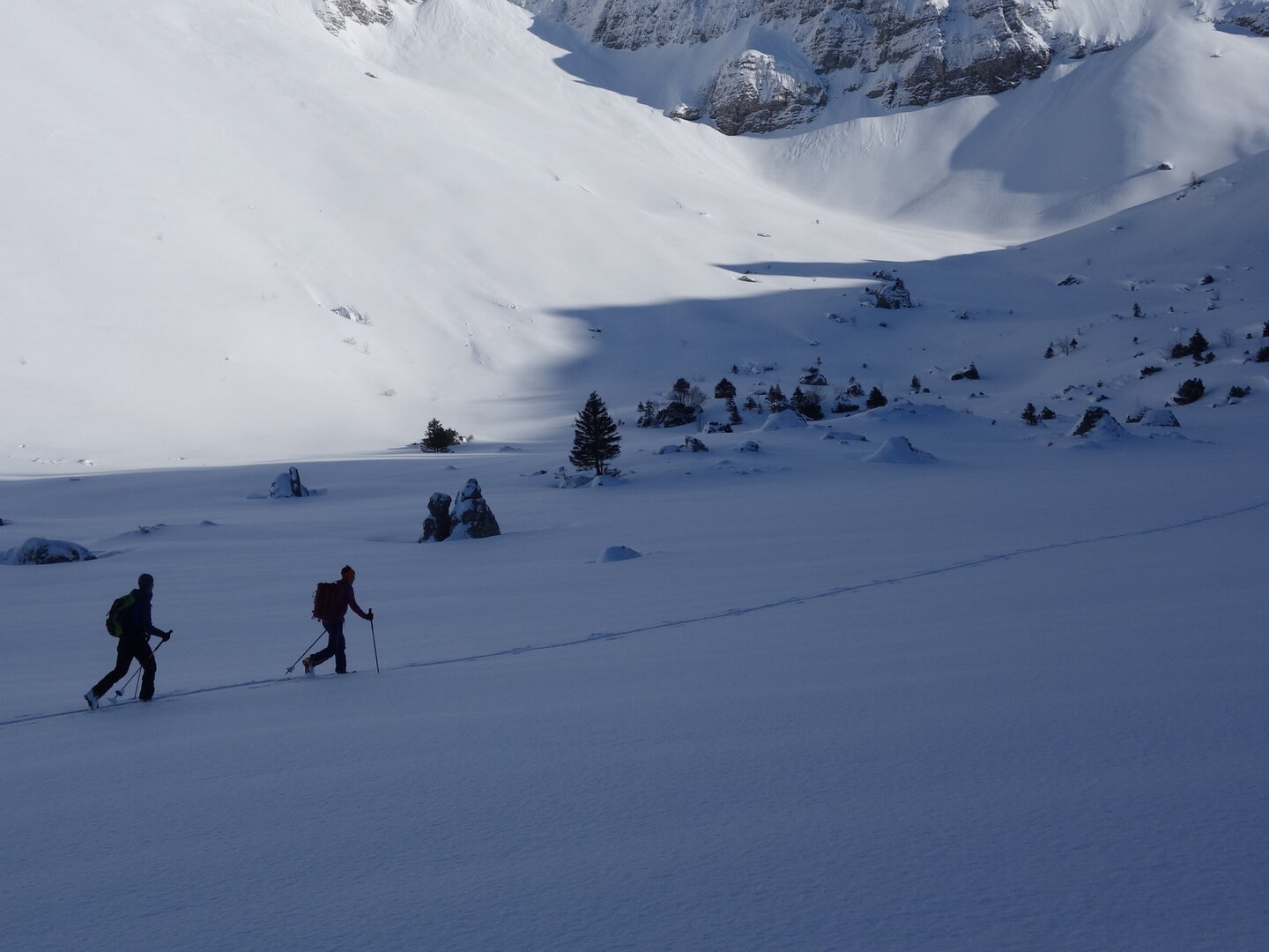 Wald, Waldlichtungen, Mulden, offene Hänge und Kuppen prägen diese Skitour. Sie lässt einige Aufstiegs- sowie Abfahrtskreationen zu, so dass wir uns an die unbefahrenen Passagen halten können und den Pulverschnee geniessen können.