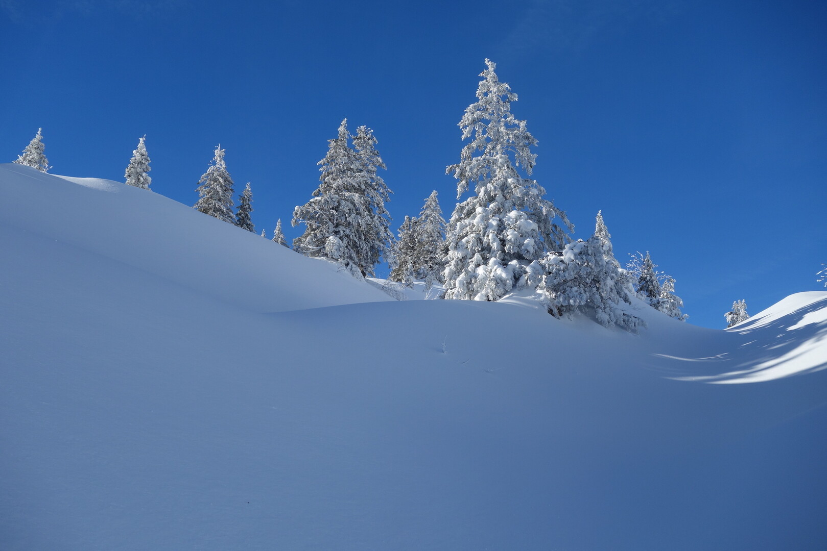 Kaum zu glauben, dass sich in dieser bekannten Region, eine Skitour verbirgt, welche sich mehr als sehen lassen kann und als solche gänzlich unerkannt ist. Da sich der Ausgangspunkt in nur geringer Höhe befindet und sich die Route durch teilweise steilere Waldabschnitte schlängelt, kann die Tour nur bei optimalen, hochwinterlichen Verhältnissen begangen werden. Dann aber, heisst es Pulverschnee juheee!